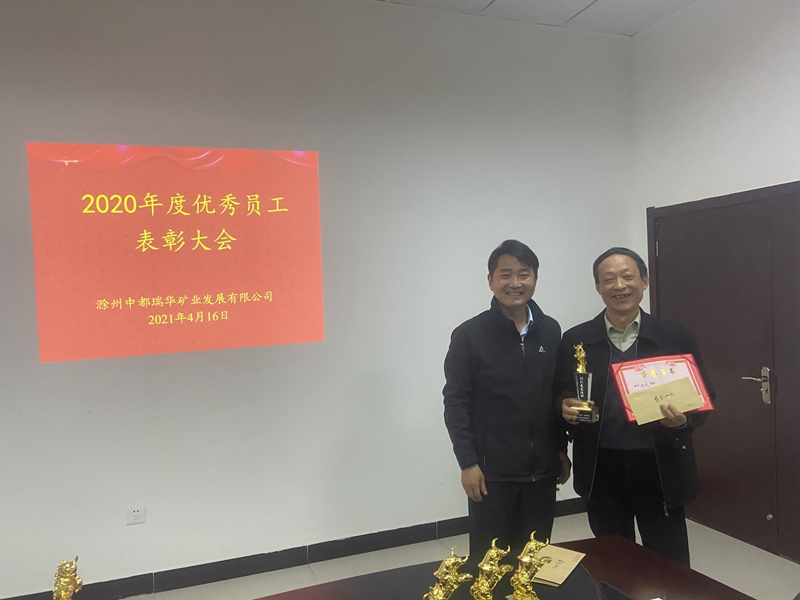 在表彰大會(huì)上,王秀超表示,過去的2020年全體員工攜手奮進(jìn)、積極進(jìn)取,在自己崗位上盡職盡責(zé),克服了疫情、鳳陽(yáng)石英砂產(chǎn)業(yè)園整合、新老班子交接等困難,實(shí)現(xiàn)礦石產(chǎn)銷兩旺、全年零處罰、無事故和風(fēng)清氣正的良好經(jīng)營(yíng)局面,超預(yù)期完成董事會(huì)下達(dá)的各項(xiàng)生產(chǎn)經(jīng)營(yíng)指標(biāo)。為弘揚(yáng)先進(jìn)、樹立典型,激發(fā)廣大干部職工的干事創(chuàng)業(yè)熱情,進(jìn)一步營(yíng)造公司上下一心、比學(xué)趕超、清風(fēng)正派的良好氛圍。經(jīng)民主測(cè)評(píng)和公司總經(jīng)理辦公會(huì)會(huì)議研究,決定授予姚德保等3名同志2020年度“孺子牛”榮譽(yù)稱號(hào),授予高加敏等3名同志2020年度“拓荒牛”榮譽(yù)稱號(hào),授予周介山等3名同志2020年度“老黃牛”榮譽(yù)稱號(hào)。這些優(yōu)秀工作者來自公司內(nèi)生產(chǎn)、銷售、財(cái)務(wù)、管理各條戰(zhàn)線,他們的先進(jìn)事跡和干事創(chuàng)業(yè)表現(xiàn),集中體現(xiàn)了習(xí)近平總書記強(qiáng)調(diào)的為民服務(wù)的“孺子牛”、創(chuàng)新發(fā)展的“拓荒牛”、艱苦奮斗的“老黃牛”的“三牛”精神。在2020年度中都瑞華礦業(yè)負(fù)重前行中,他們以“不待揚(yáng)鞭自?shī)^蹄”自覺意識(shí),勇當(dāng)公司攻堅(jiān)克難的“排頭牛”,抓鐵有痕、踏石留印,為公司下一步高質(zhì)量發(fā)展做好表率。