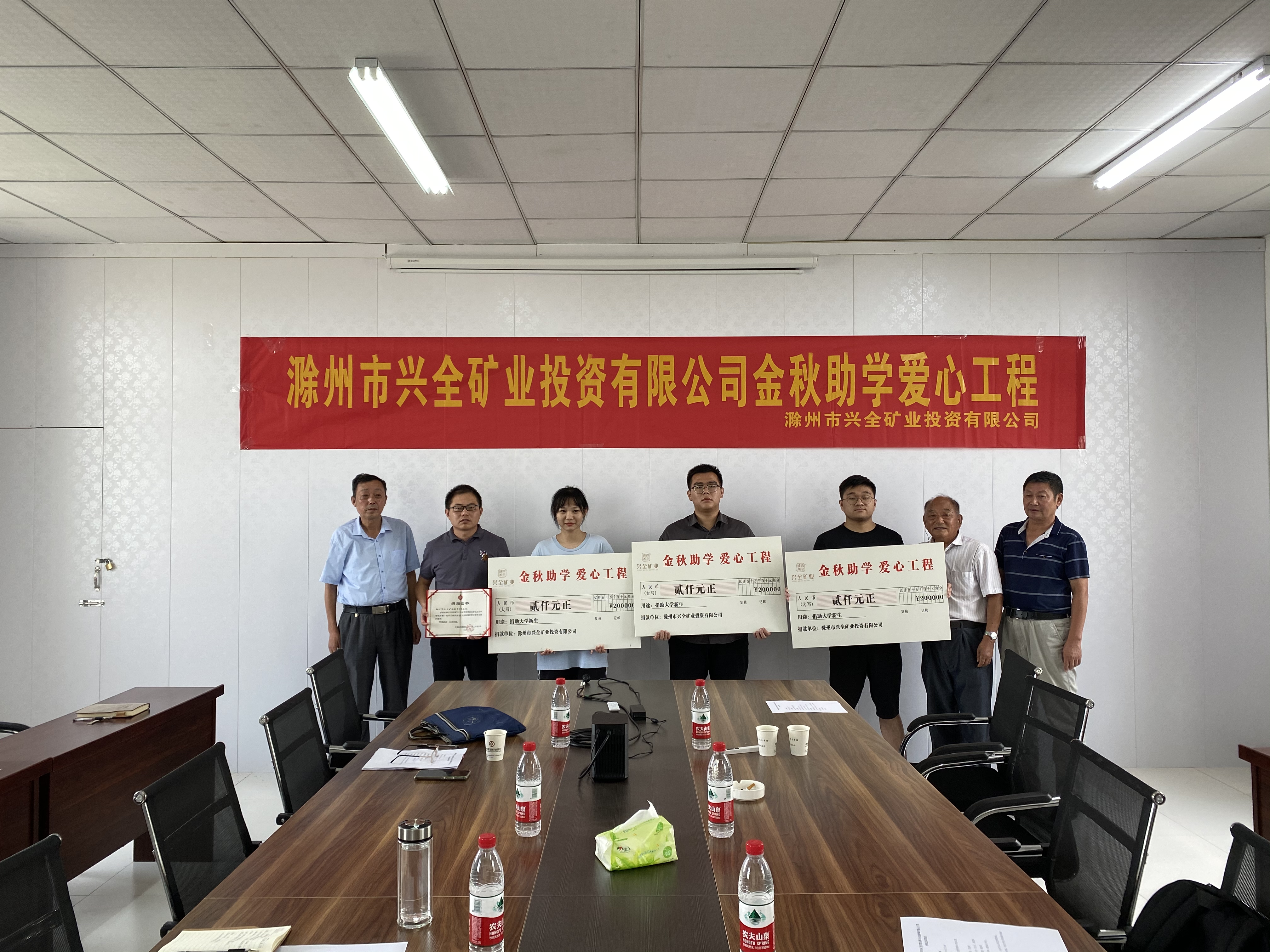 8月19日,滁州市興全礦業(yè)投資有限公司召開座談會,正式啟動金秋助學(xué)工程,全椒縣六鎮(zhèn)鎮(zhèn)黨政辦主任夏金連、興全礦業(yè)公司總經(jīng)理陳昌富及受資助大學(xué)生等參加座談會。